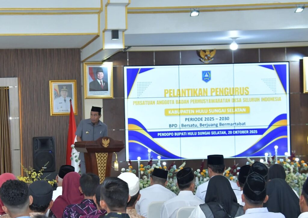 HULU SUNGAI SELATAN – Pengurus Persatuan Anggota Badan Permusyawaratan Desa Seluruh Indonesia (PAPBDSI) Kabupaten Hulu Sungai Selatan (HSS) Periode 2025-2030 resmi dilantik, Senin (20/10/2025) di Pendopo Bupati HSS.