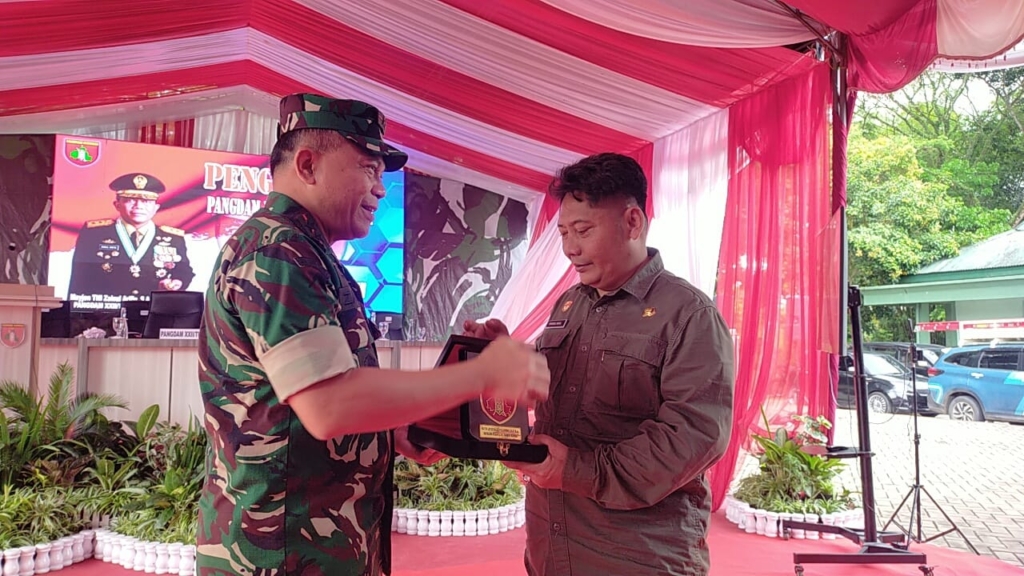 Kegiatan ditutup penyerahan cindera mata oleh Bupati HST kepada pangdam XXII Tambun Bungai Mayjen TNI Zainul Arifin. (mdr)