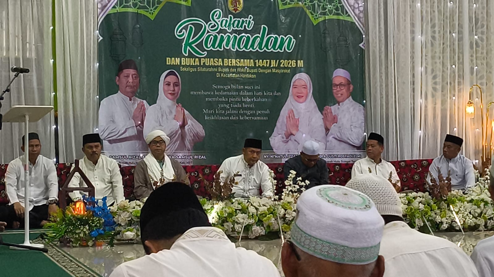 “Atas nama Pemerintah Kabupaten HST, kami mengucapkan Selamat Ramadan, Selamat Menunaikan Ibadah Puasa 1447 Hijriah, 2026 Masehi kepada seluruh jemaah dan masyarakat Kecamatan Hantakan,” ucap Bupati HST Samsul Rizal.