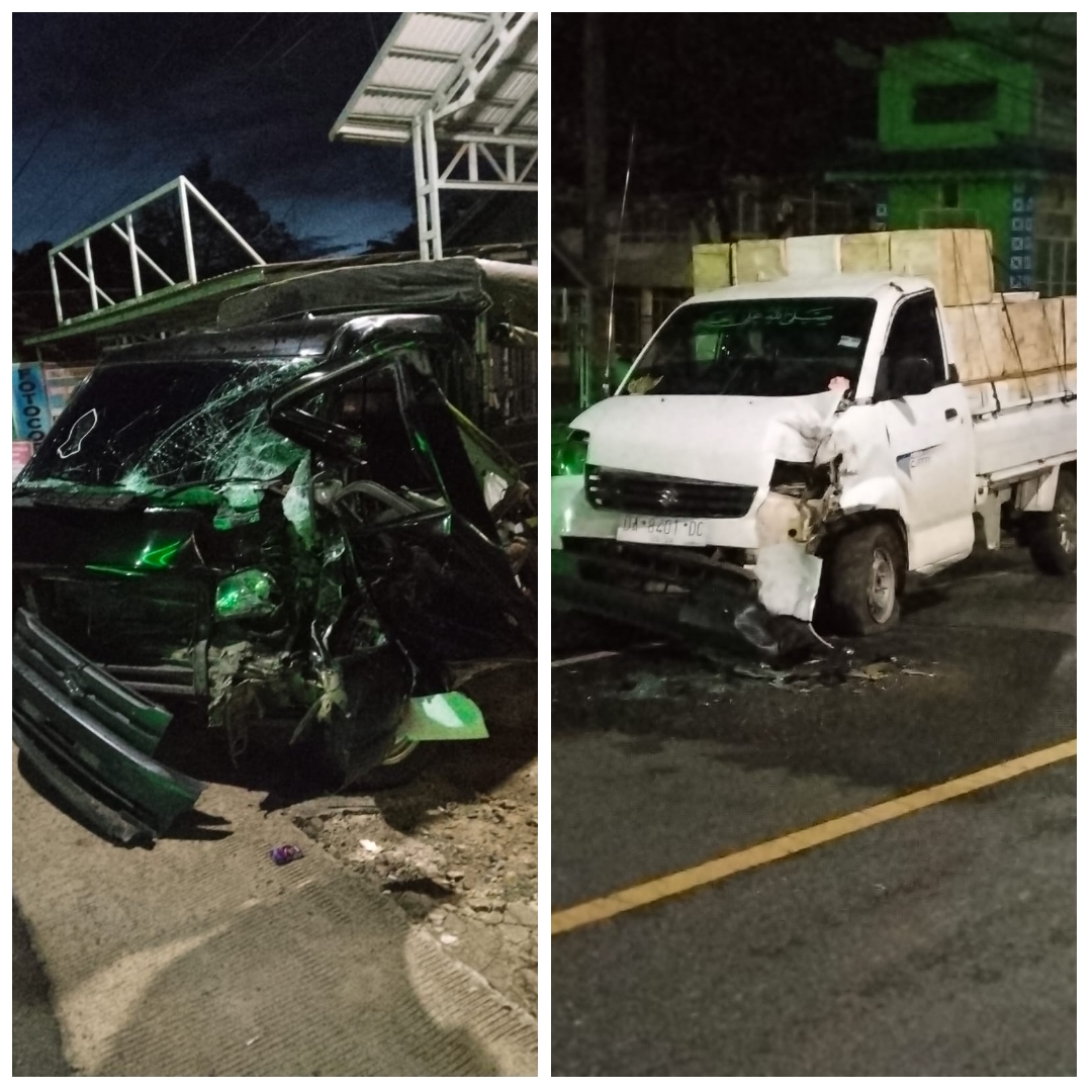Akibatnya, terjadi benturan keras dengan pick up putih yang datang dari arah sebaliknya.