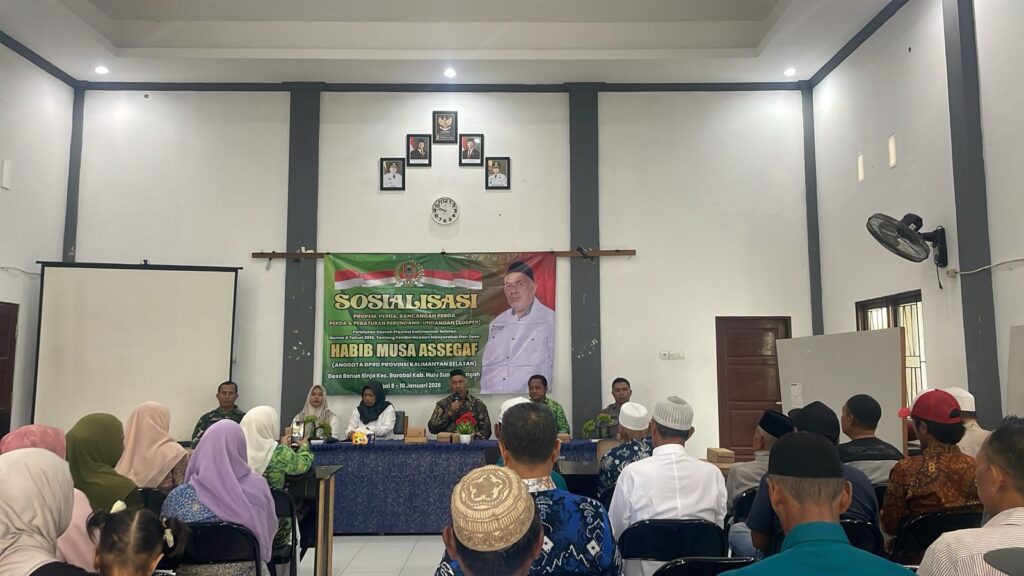 HULU SUNGAI TENGAH – Anggota DPRD Provinsi Kalimantan Selatan Fraksi PKB Habib Musa Asegaf, melaksanakan Sosialisasi Peraturan Daerah (Sosper), Jumat (9/1/2026) di Gedung Posyandu Desa Banua Binjai.