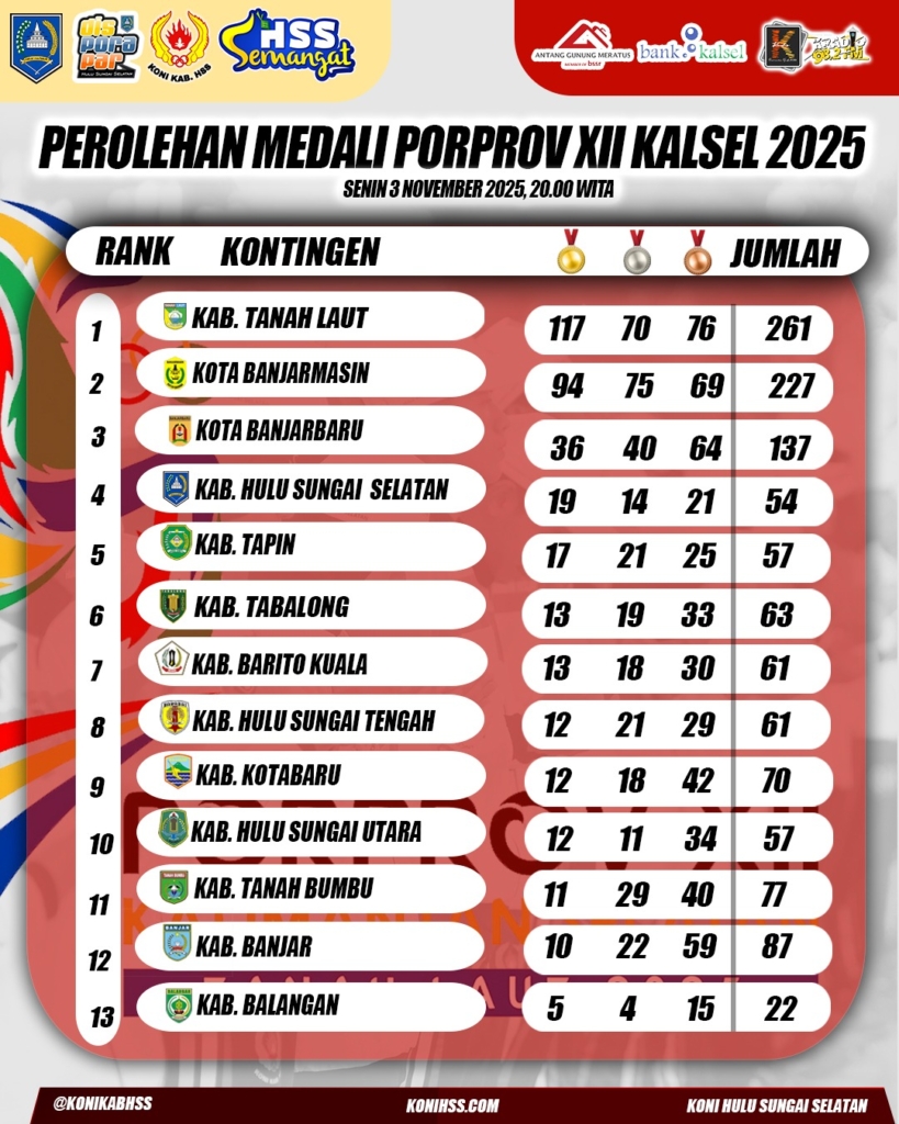 Klasemen Porprov XII Kalsel – 4 November 2025
