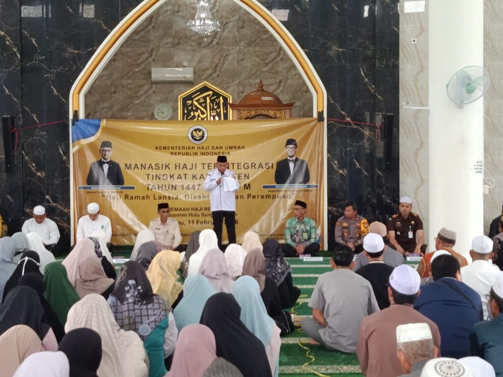 HULU SUNGAI TENGAH – Kegiatan bimbingan manasik haji reguler Kabupaten Hulu Sungai Tengah (HST) 1447 Hijriah, Rabu (11/2/2026) di Masjid Az Zikra Arifin Ilham Desa Mandingin Kecamatan Barabai.