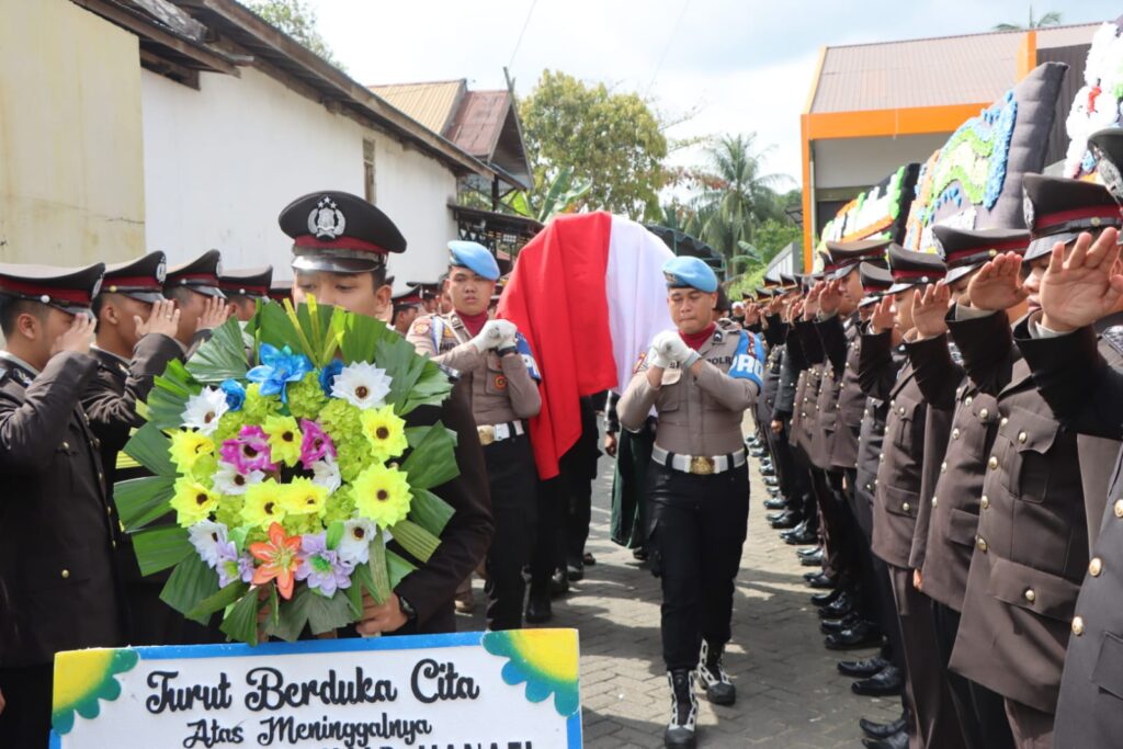 “Polres HST menunjukkan rasa belasungkawa yang mendalam, sekaligus penghargaan atas dedikasi dan pengabdian almarhum selama bertugas sebagai anggota Polri,” ucap Kompol Maturidi, membacakan amanat Kapolres.