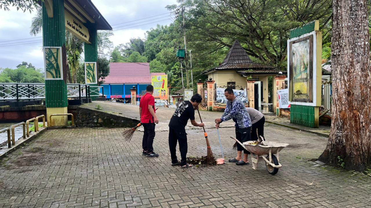 Aksi gotong royong ini difokuskan pada pembersihan sampah di sekitar area pemandian, jalan akses, serta fasilitas umum guna menciptakan suasana yang bersih, sehat, dan nyaman bagi para pengunjung.