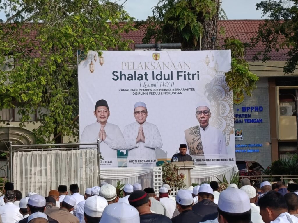 HULU SUNGAI TENGAH – Salat Idul Fitri 1447 Hijriah di Kabupaten Hulu Sungai Tengah (HST) digelar, Sabtu (21/3/2026) pagi di Taman Dwi Warna Barabai, dihadiri berbagai unsur masyarakat.