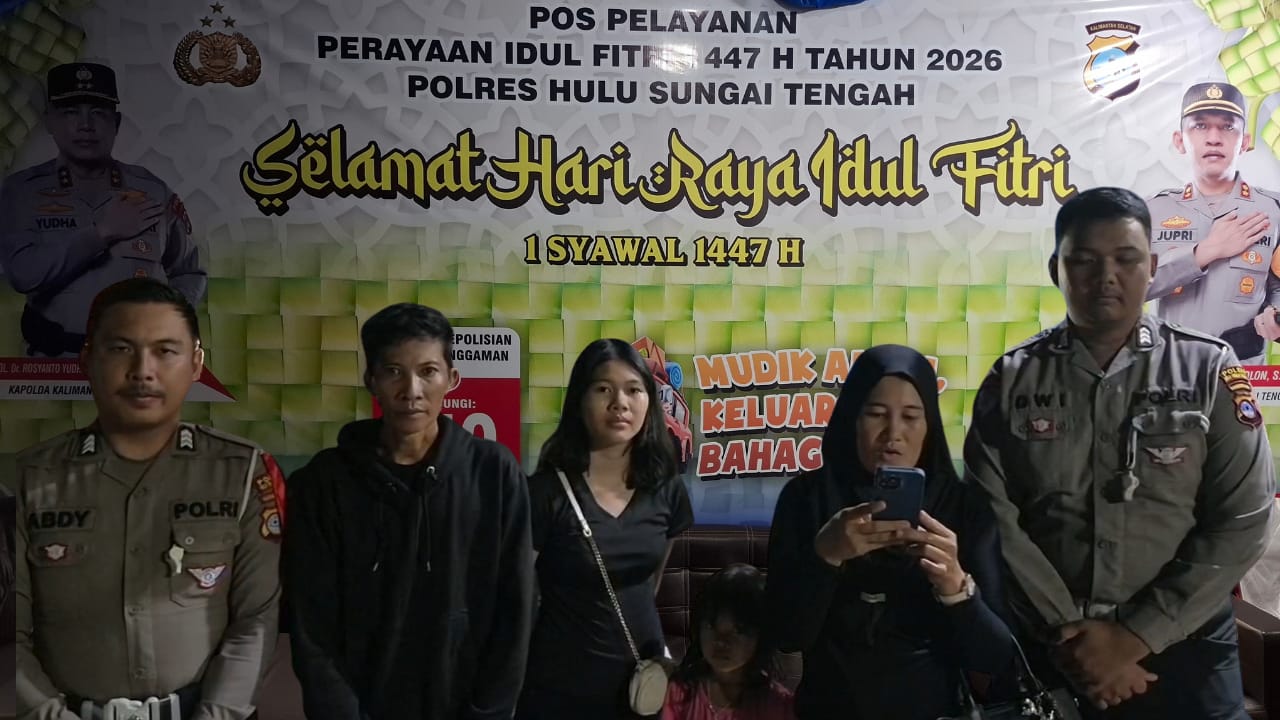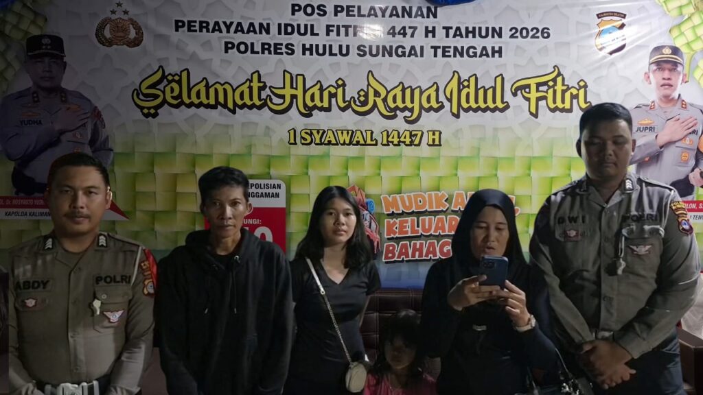 HULU SUNGAI TENGAH – Anggota yang bertugas di Pos Pelayanan Pantai Hambawang, Kabupaten Hulu Sungai Tengah (HST) membantu keluarga terlantar dalam rangka Operasi Ketupat Intan tahun 2026.