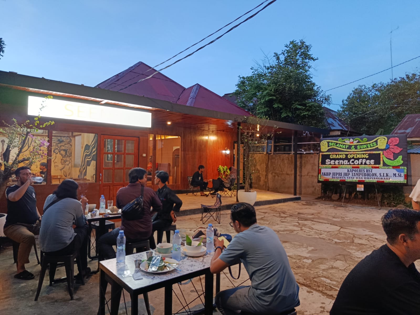 Tanda dukungan terhadap pembukaan terlihat dari karangan bunga yang diberikan oleh Kapolres Hulu Sungai Tengah, AKBP Jupri JHP Tampubolon yang terpampang jelas di area kafe.