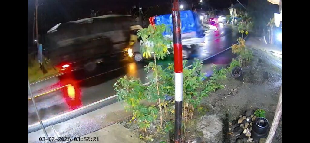 Kondisi jalan pada saat kejadian diduga licin akibat pengaruh cuaca malam hari, yang menjadi faktor pendukung terjadinya insiden tersebut.