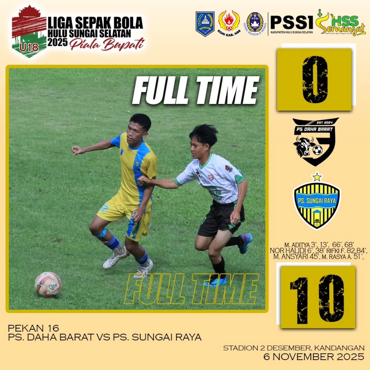 PERStasi PS Sungai Raya Menggila, Hajar PS Daha Barat 10 Gol Tanpa Balas 7 Desember 2025 • HULU SUNGAI SELATAN – Pertandingan papan bawah klasemen antara PS Sungai Raya melawan PS Daha...